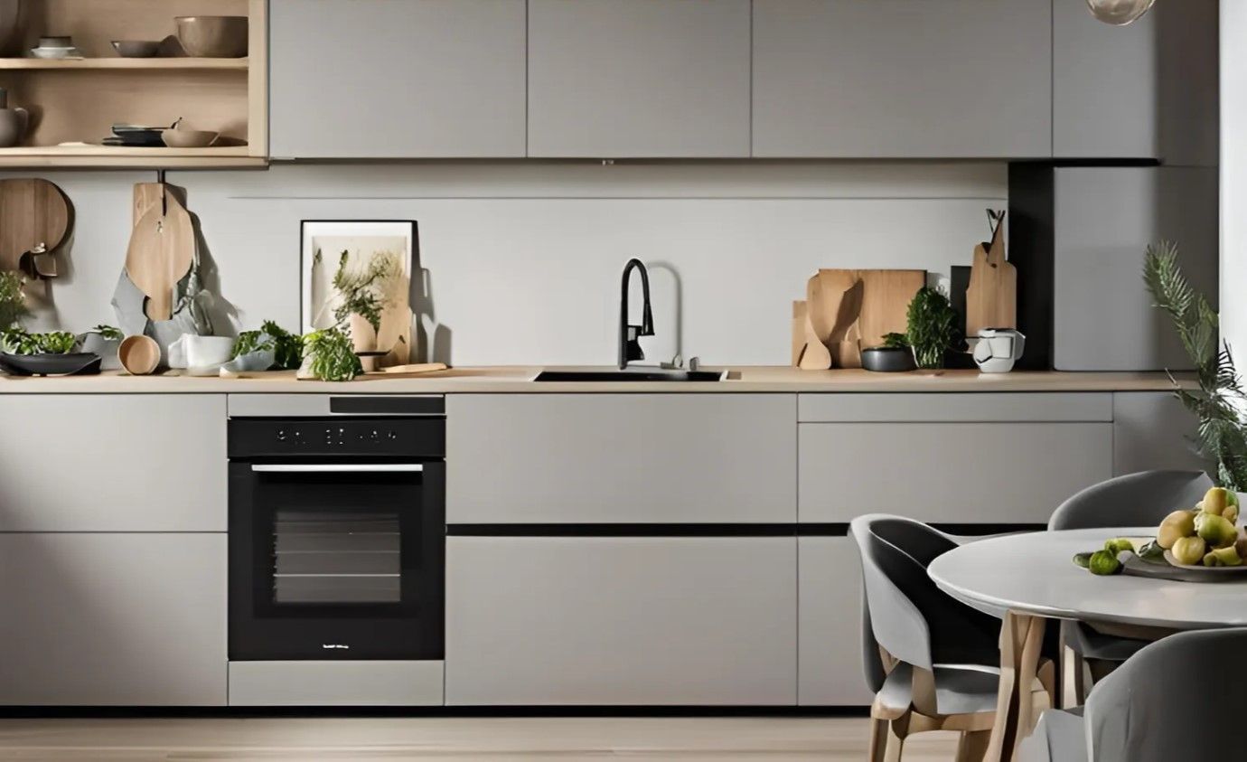 Equipped kitchen with appliances.