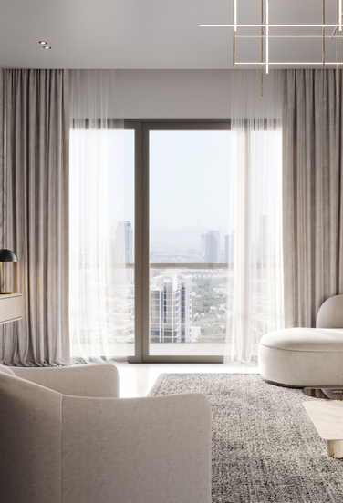The lavish materials and uncompromised finishing throughout the building depict supreme quality and craftsmanship from only the most distinguished of international suppliers. All the fittings and fixtures within the apartments are handpicked to perfectly compliment the interior design. The sliding glass doors and windows create a perfect balance between interior and exterior spaces while maintaining the highest level of environmental control and functionality.