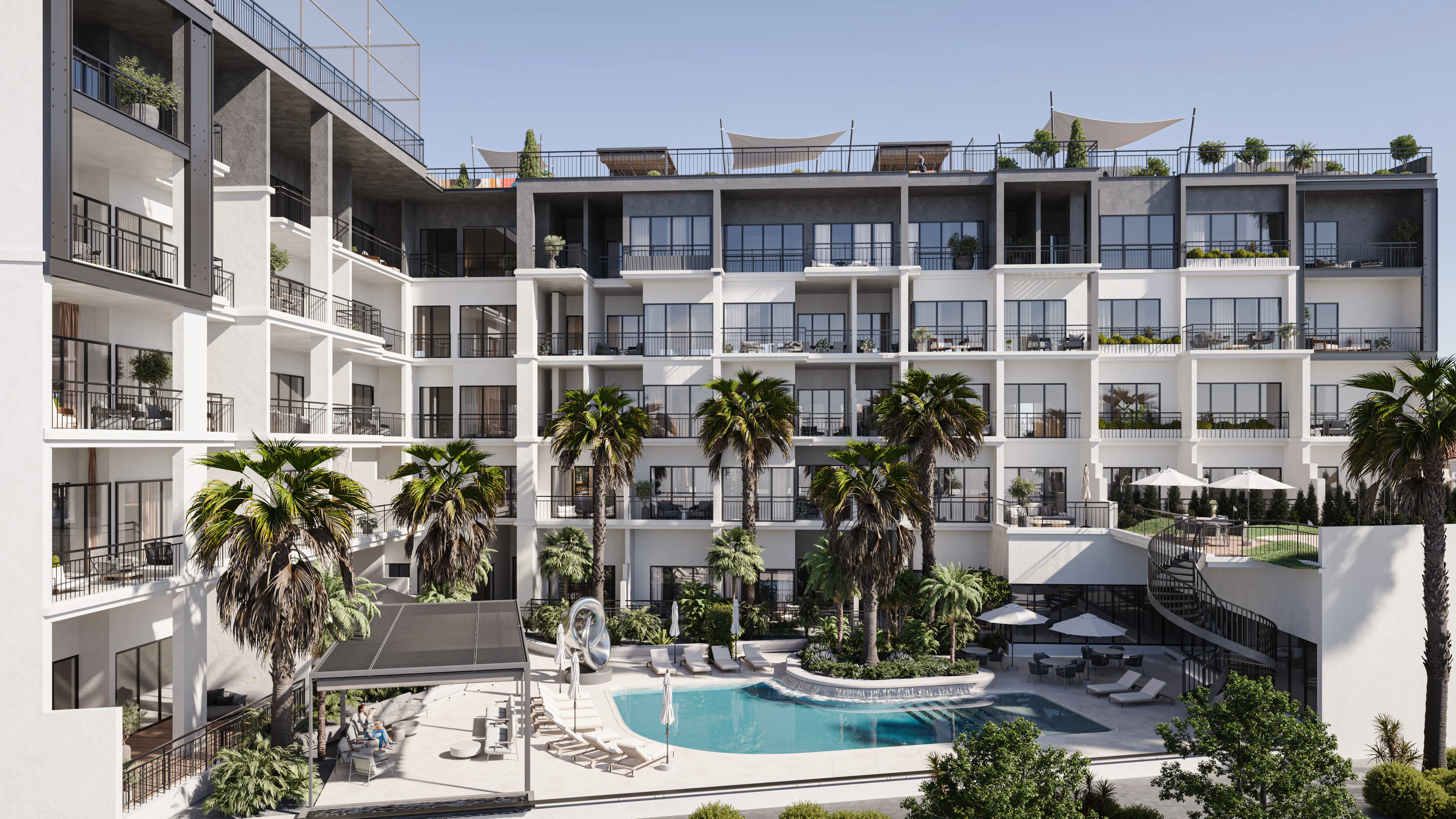 The amenities are curated to support relaxation, wellbeing, and effortless daily routines. A tranquil swimming pool area serves as a central retreat, offering a peaceful environment for leisure and rejuvenation. Surrounding spaces are designed to encourage calm moments throughout the day, whether enjoying time outdoors or unwinding after a busy schedule. The overall amenity experience emphasizes privacy, comfort, and understated luxury, reinforcing a boutique residential character rather than a large-scale community setting.