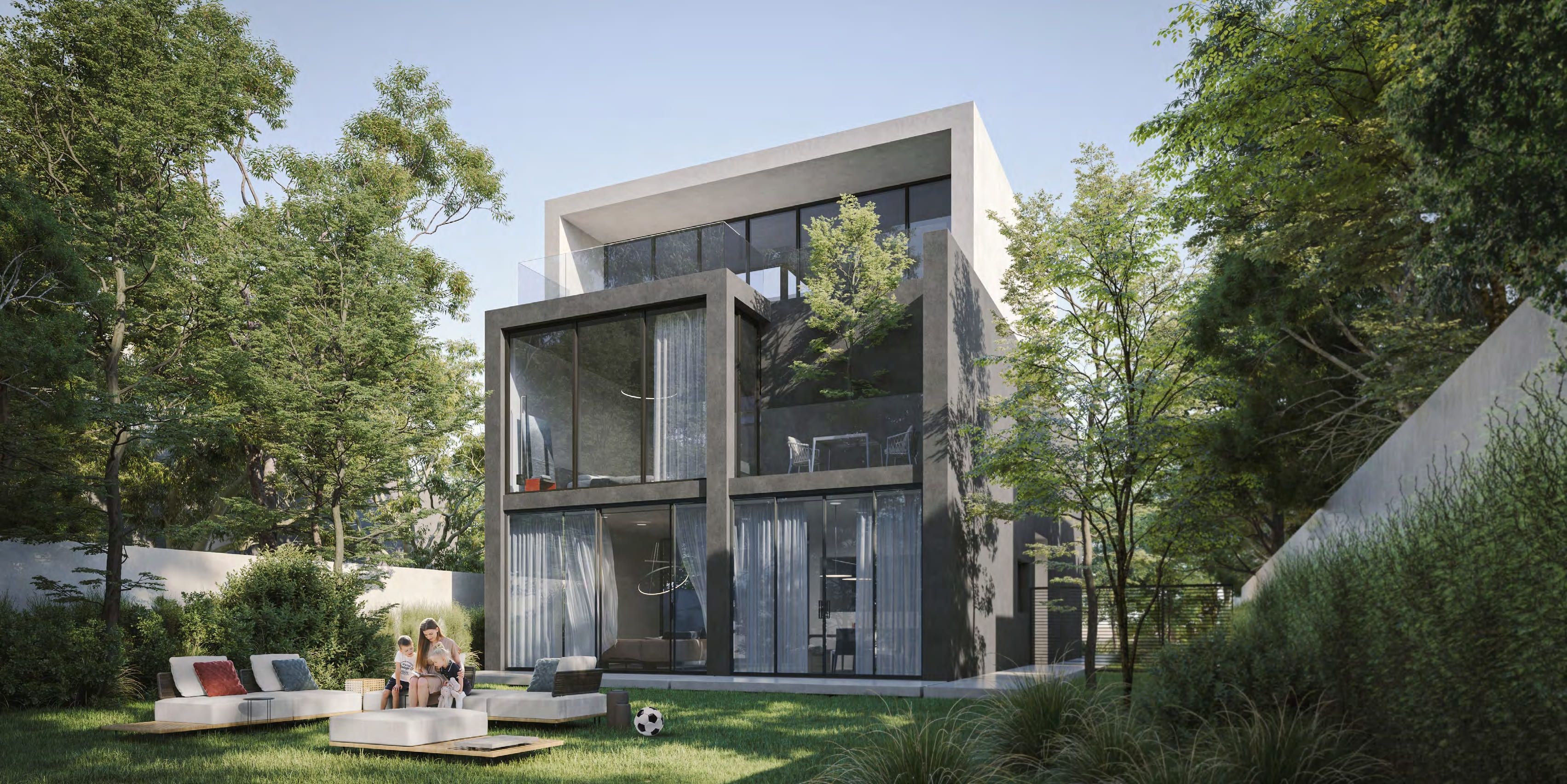 Featuring superb contemporary design and an array of indoor and outdoor living and entertainment spaces, the Five Bedroom Jouri Hills Villa is a signficant lifestyle statement in its own right. The use of smart technology and floor- to-ceiling windows help to deliver the feeling of a truly modern lifestyle. This home features a master bedroom on the second floor with two terraces, as well as ensuite bathrooms for the four other bedrooms.
