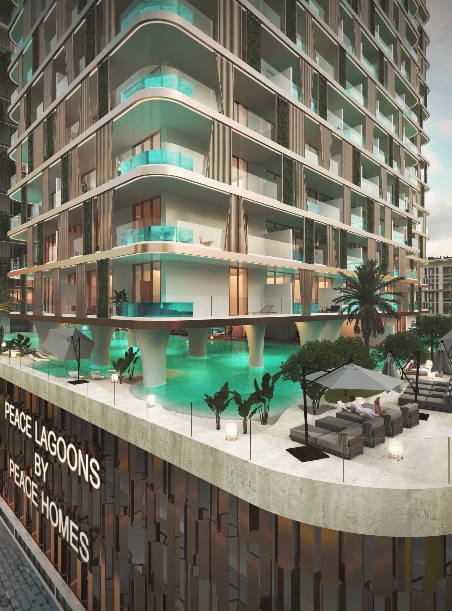 This mid-rise architectural marvel epitomizes the essence of lagoon-style luxury, with a waterfall and a stunning lagoon at its core, creating a tranquil and refreshing ambiance. The design incorporates sleek, modern lines, and each detail conveys sophistication and elegance. Residents can enjoy spacious balconies and a private pool for each unit, ensuring an elevated living experience.