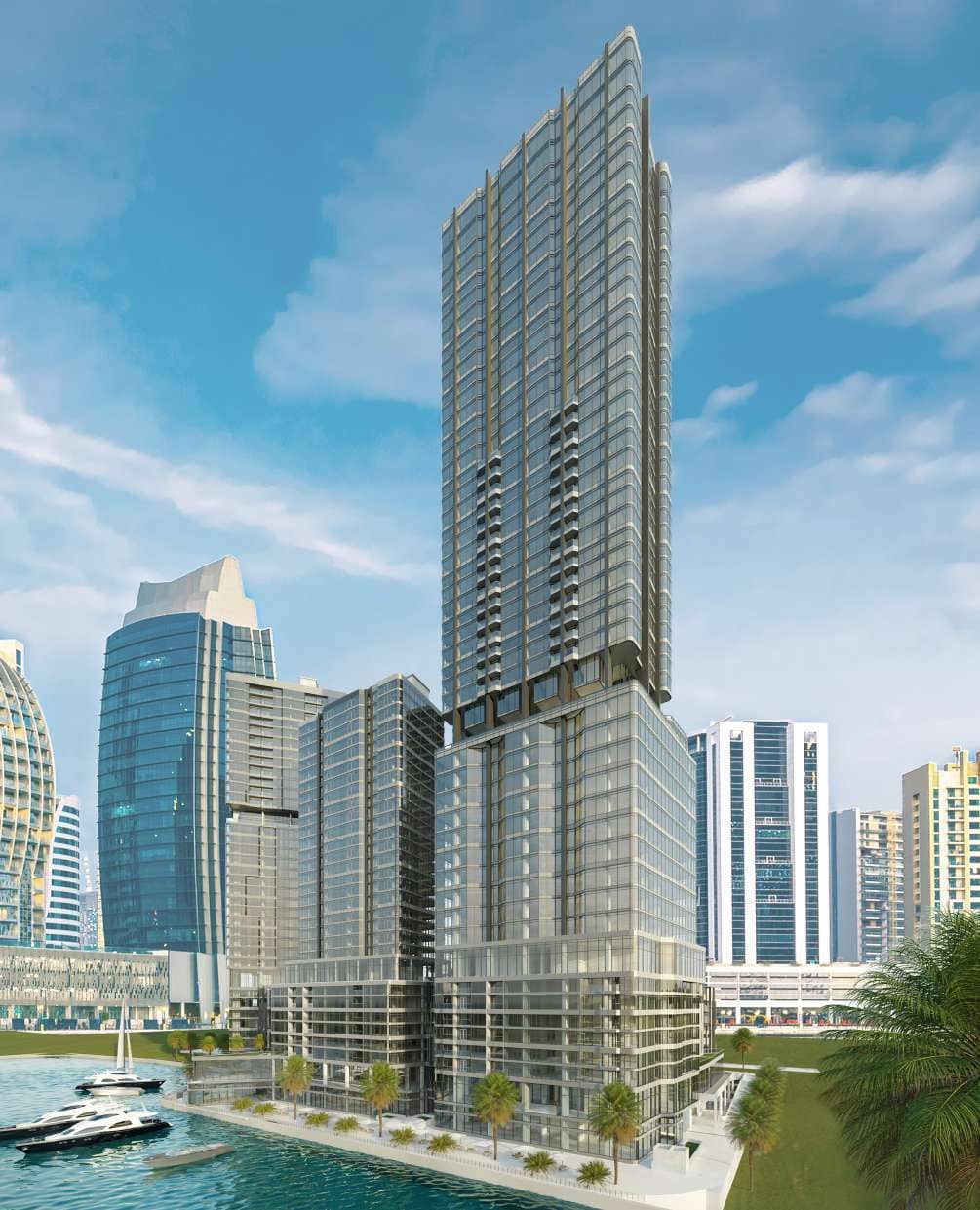 Radiant Square offers luxurious living spaces with high-end finishes and top-of-the-line appliances. The bathrooms feature elegant tiling and fixtures from Villeroy and Boch, Hansgrohe, and RAK
