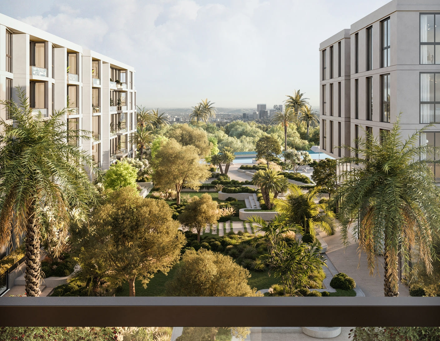 The living spaces are characterized by a thoughtful design that makes the layout and rooms radiate harmony and tranquility. With décor in warm earthy greens, browns and blues, your home will seem like a serene haven amidst the bustling atmosphere of Dubai. Each apartment has at least one balcony or terrace with views of the surrounding area.Â