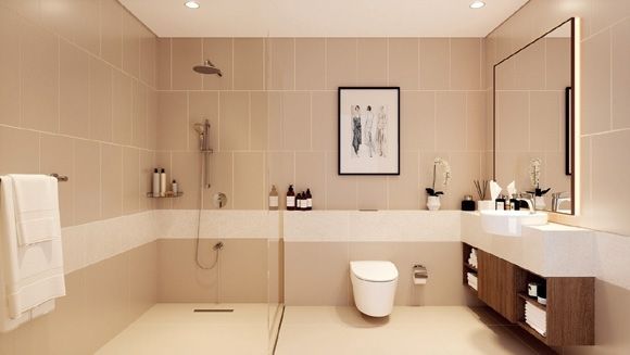 Premium Tile Flooring. Elegantly Proportioned Window-walls. Generous Balcony And Terrace Areas. Vitrified Porcelain Tiled Floors. Emulsion Paint For Walls. Teak Wood Finish Main Doors & Internal Doors. False Ceiling With Shadow Grooves. Vitrified Bath Porcelain Tiles On Floor And Wall. 2-in-1 Shower System With Shower Head & Telephone Shower. Vitra Sanitary Ware & Accessories. Mirror With LED Light In Master Bathroom. Vanity Counter & Ledge Wall In Omani Beige Marble
