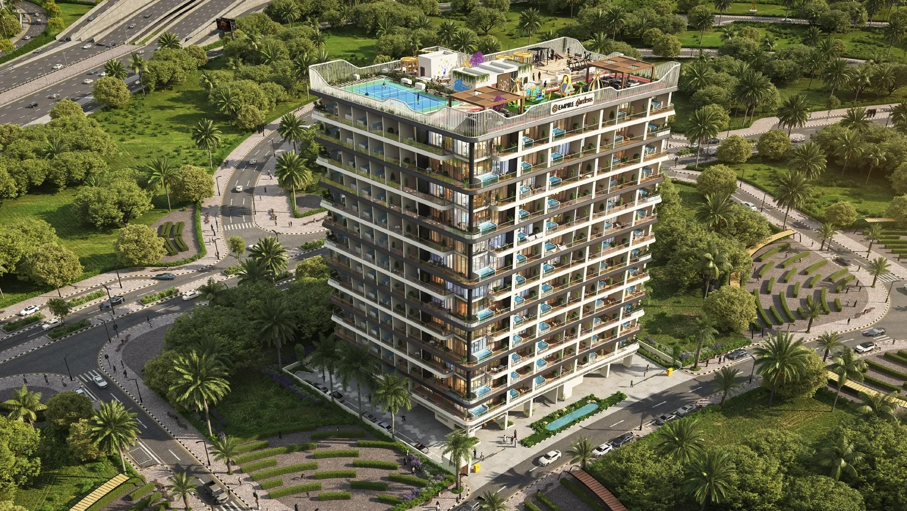Empire Gardens at Dubai Land Residence Complex elevates modern urban living through its elegant architecture and refined design language. With a sleek façade featuring glass-lined balconies, soft geometric contours, and warm natural tones, the development presents a harmonious blend of contemporary aesthetics and everyday comfort. This thoughtfully envisioned community offers residents a calm, balanced environment within one of Dubai’s most rapidly growing residential districts.