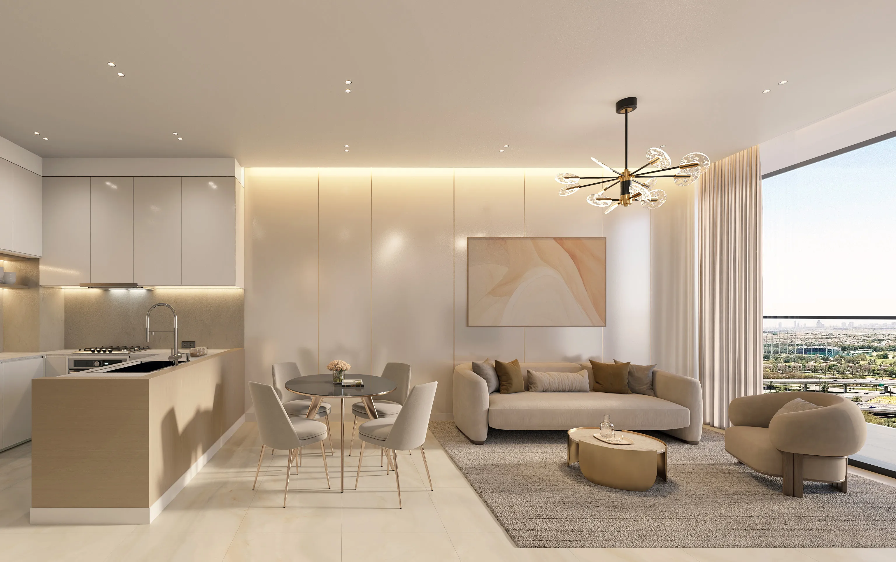 Each apartment is finished with high-quality porcelain tiles, floor-to-ceiling windows, and carefully selected materials that create a bright and modern interior. The kitchens are beautifully designed with practical layouts, durable finishes, and built-in storage that combines functionality with elegant style. Every detail, from the refined finishes to the smart layouts and contemporary furnishings, reflects superior craftsmanship and creates a space that feels luxurious, comfortable, and inspiring.